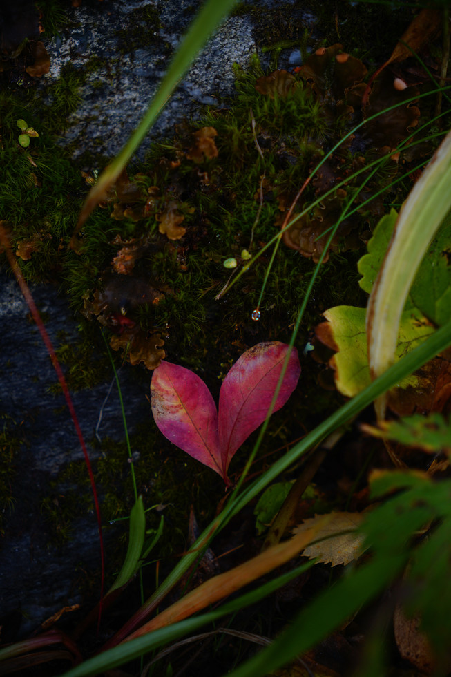 Aan het eind van dag drie kom ik aan bij een uitgestrekt meer. Het waait wat, maar de plek is prachtig en ik vind een vlak stuk grond voor mijn tent. Mijn voeten en sokken zijn doorweekt van het moerassige pad. Dit traject is een aanslag op je voeten – constant nat, over scherpe rotsen en dikke wortels. Je moet je aandacht erbij houden, wat soms vermoeiend is, maar het levert ook magische stukken op: planken door het moeras, herfstbladeren als een kleurrijk tapijt onder je voeten.
